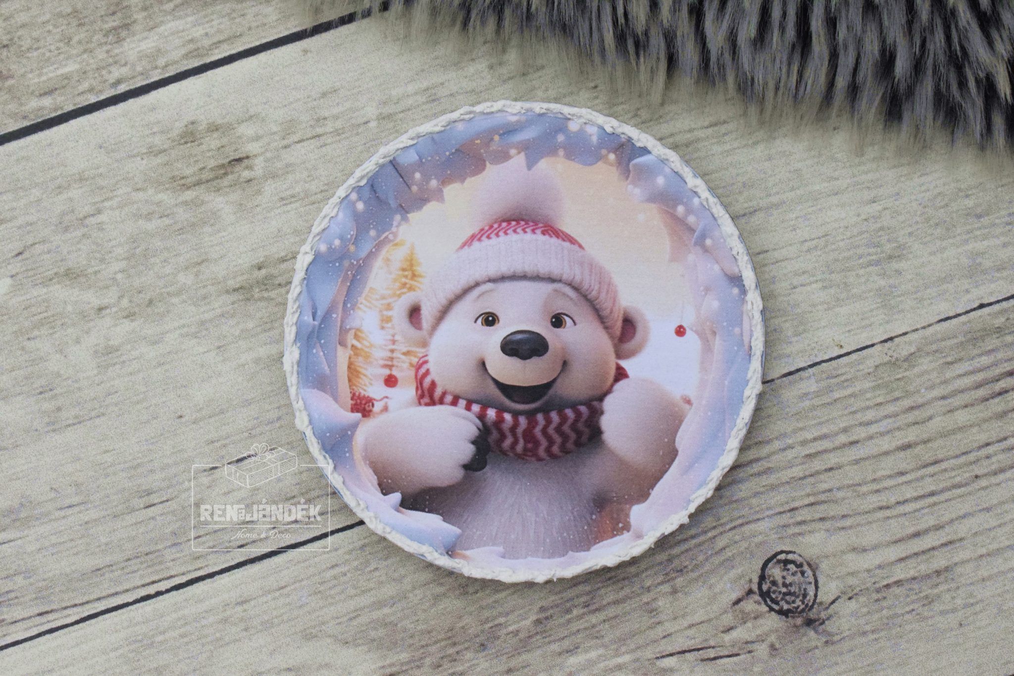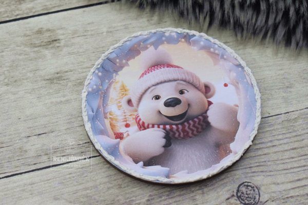 Hűtőmágnes – jegesmaci, piros-csíkos szettben