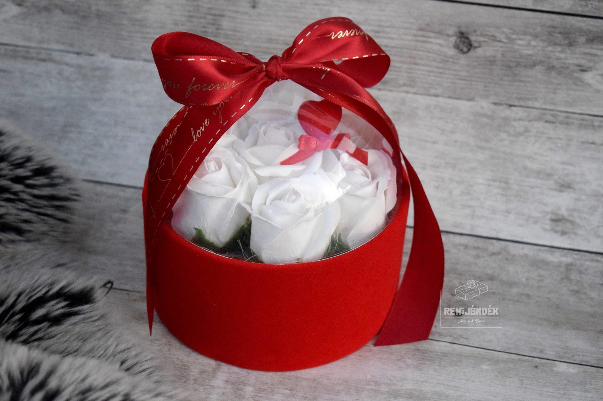 A bársony borítású, búrás boxot 7 db szappanrózsával töltöttem meg.