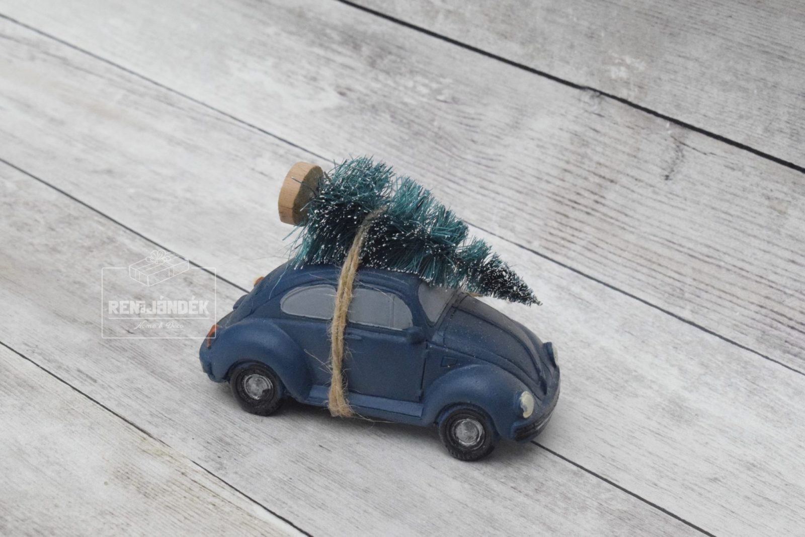 Kerámia kisautó fenyőfával zöld színben, melyet díszítő elemként használhatsz lakásdekorok készítésénél, de akár önmagában is ünnepi hangulatot teremthetsz vele.